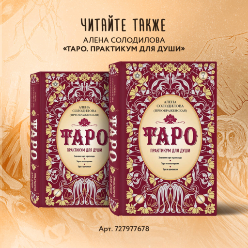 Алёна Солодилова практикует Таро уже 30 лет. Именно карты привели ее в профессию психолога, вдохновили на написание нескольких книг, создание Школы психологического Таро и на организацию фестивалей. Алёна живет в пригороде Санкт-Петербурга. Ей одинаково приятно творить и созерцать. Она любит дыхание леса, тишину и неспешную беседу с единомышленниками.