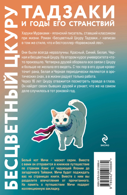 Белый кот Мичи — маскот серии. Вместе с вами он оправится в книжное путешествие по странам Азии: от чарующей Японии до загадочного Тайваня. Мичи будет поджидать вас на страницах книги. Вместе с ним вы разделите впечатления от прочитанного. На память о путешествии Мичи подарит коллекционную закладку.
