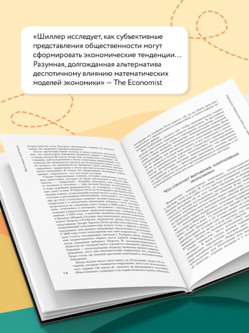«С идеей о том, что человеческое поведение может влиять на рынок, согласится большинство трейдеров... Однако в своей “Нарративной экономике” Шиллер подходит к данному вопросу намного шире и глубже, рассматривая то, как истории, которые мы рассказываем об окружающем нас мире, определяют наше поведение... Он утверждает, что экономисты должны анализировать в том числе и их, если хотят хоть как-то повысить качество собственных прогнозов таких масштабных событий, как рецессии, “пузыри” на рынках активов, и то, как люди будут на них реагировать». — РАНА ФОРУХАР, Financial Times
