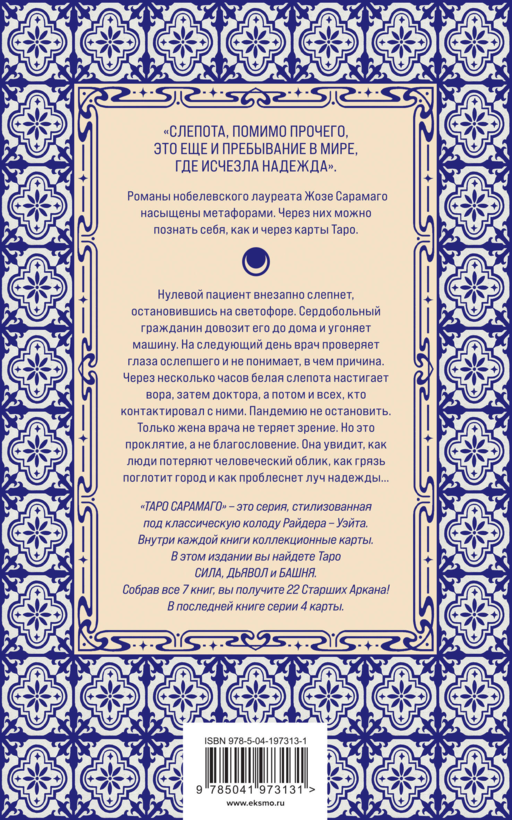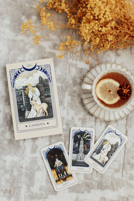 «Таро Сарамаго» — это серия, стилизованная под классическую колоду Райдера-Уэйта. Внутри каждой книги коллекционные карты. В этом издании вы найдете Таро Сила, Дьявол и Башня. Собрав все 7 книг, вы получите 22 Старших Аркана! В последней книге серии 4 карты.