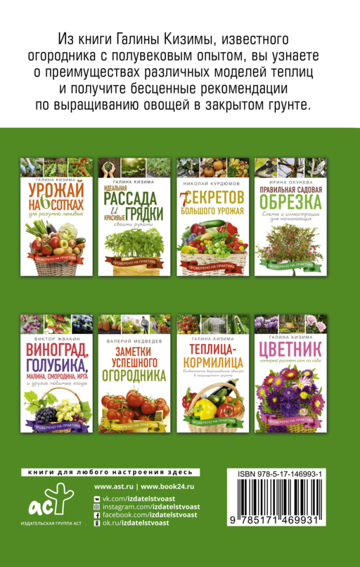 Даже самые опытные дачники не застрахованы от сюрпризов изменчивой погоды. Сильный ветер ломает выращенные с любовью ценные сорта овощных культур, ночные понижения температуры приостанавливают рост растений, а заморозки вовсе губят рассаду. Так что всем, кто хочет получить гарантированный урожай и увеличить продолжительность сезона на два-три месяца, без теплицы не обойтись. Галина Кизима, известный огородник с полувековым опытом, в этой книге подробно рассказывает о преимуществах различных моделей теплиц и наиболее эффективном их использовании.