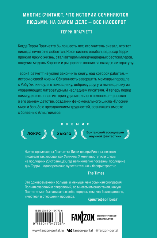 «Трогательный и остроумный рассказ о волшебном уме Пратчетта и его болезни Альцгеймера, написанный человеком, который знал его лучше всех». — The Sunday Times