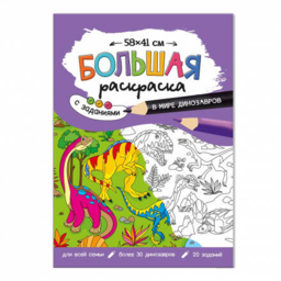 Большая раскраска с заданиями. В мире динозавров. 58х41 см. ГЕОДОМ