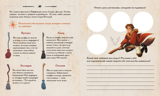 "Harry Potter" serisi hayranları için yaratıcı görevlerle dolu eskiz defteri. Sihirin sırlarını keşfet, büyüleyici mucizeler ve sınır tanımayan hayal gücü dünyasına dal! Bu kitapta sevilen karakterler ve kesinlikle moralini yükseltecek, büyülü bir atmosfer sunacak benzersiz yaratıcı görevler seni bekliyor. Düşüncelerini ve hayallerini paylaş, korkularla nasıl savaşılacağını öğren, içinde yeni yetenekler keşfet. Kendi büyülerini icat et, iksir tarifleri oluştur, kehanetlerde bulun ve Hogwarts'ın en iyi öğretmenlerinden testler çöz.