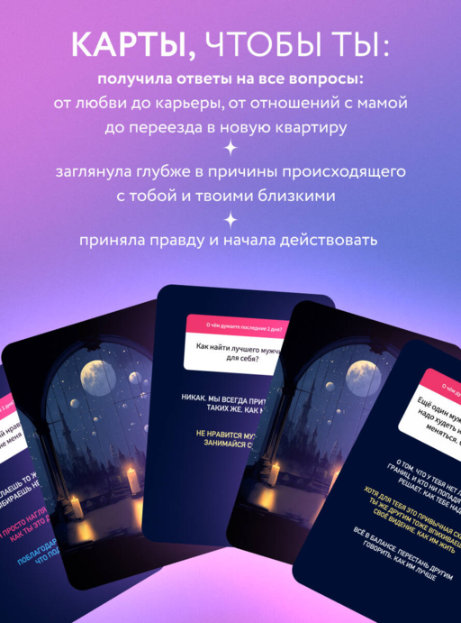 Hediye seti şunları içerir: 1. "Sen Nedensin: Neden her zaman hak ettiğimizi alıyoruz ve ailede ile hayatta düzen nasıl sağlanır" kitabı Şansınızı yanınıza nasıl çekersiniz? Kendinize yalan söylemeyi bırakın! Bütün başarısızlıklarınız ve sorunlarınızın nedeni her zaman sizde. Bunu kabul edin ve kendi mutluluğunuzun ve başarınızın nedeni olun. Dünya tamamen adildir. Usta Yulia Ivlieva hayatınızı sebep-sonuç ilişkileriyle tamamen açıklayacak. Önceden fark etmediğiniz bu ilişkileri artık görmemek mümkün değil. "Sen Nedensin" kendini tanımanın ilk ve gerekli basamağıdır. İnce sistem ayarlarınızı yönetmeyi öğrenecek ve bedensel düzeyden aile sistemine kadar kapsamlı bir dönüşümü başlatacaksınız. 2. "Cadıya Sor. Seni her şeyi bilen kartlar" Kartları "Cadıya Sor" fal değil. Bu, sizin alanınızdan bilgi okuyarak, yani dünyaya yaptığınız taleplerle çalışan özgün bir yöntem. Deste, aşkından kariyere, anne ile ilişkiden yeni eve taşınmaya kadar tüm hayat alanlarıyla ilgili 55 soruya cevap veren kartlar içerir. Ancak bugün senin için en önemli olan, düşündüğün şeyden tamamen farklı olabilir. Bu kartlar, senin ve sevdiklerinin yaşadıklarının nedenlerini daha derinlemesine görme şansı verir. Cevabını almaya korktuğun soruları bile sor. Kartlar gerçeği kabul etmene yardımcı olur. Ve seni asla ele vermezler.