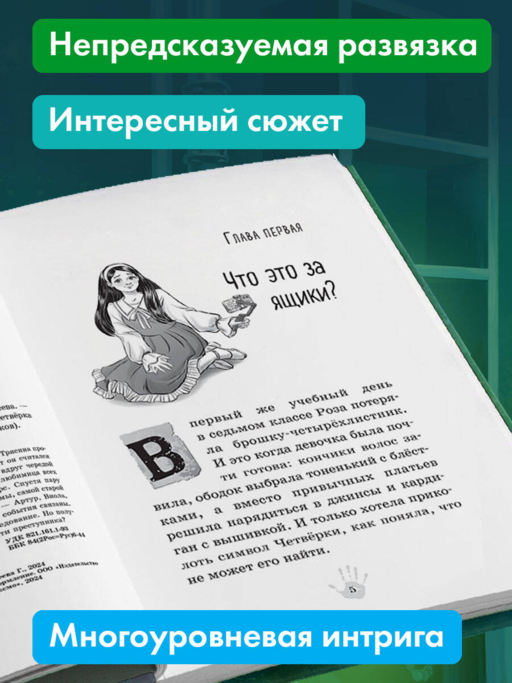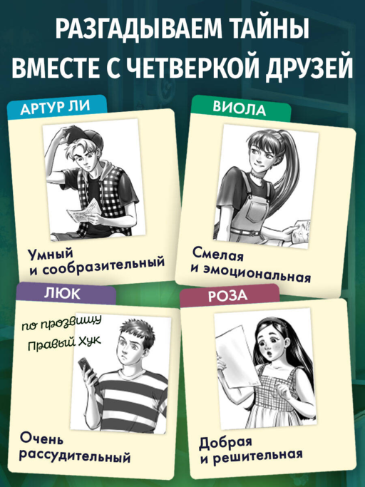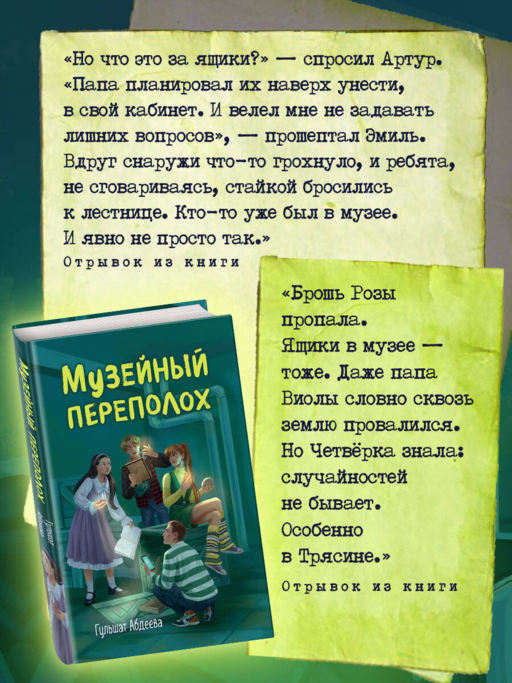 Dört arkadaşın soruşturmalarını konu alan popüler serinin devamı! Bu sefer onları müze bodrumlarındaki sırlar ve Google'ın bile bilmediği arayışlar bekliyor! Artur, Roza, Viola ve Luke, "Bataklıktaki Dörtlü" olarak biliniyor. Henüz on dört yaşındalar ama deneyimli bir dedektif ekibi. Çocuklar, sınıf arkadaşları Emil'in babasının, yerel müzenin müdürünün, birisi tarafından şantaj yapıldığını duyuyorlar. Suçlu, sırrı saklamak karşılığında müdürden yeni sergi için kutuları teslim etmesini istiyor. Sergi çok ses getiren bir şekilde tanıtıldı ve yakında açılacak, ama içeriği sürpriz. Serginin açılması engellenirse müdür işini kaybedecek ve eserleri kaybetmekten yargılanabilir. Ama sırrın ortaya çıkması da aynı sonuçları ya da daha kötüsünü getirebilir. Emil, arkadaşlarından babasına yardım etmelerini istiyor. "Dörtlü" boş duramaz ve yeni bir soruşturmaya başlar! Gulşat Abdeeva, çocuk ve gençlik kitapları yazarı, birçok edebiyat ödülü sahibi. Dedektif hikayeleri sürükleyici ve türün en iyi geleneklerinde beklenmedik olaylarla dolu. Enid Blyton kitaplarını sevenler, Dmitri Yemets'in "Altın Sakalar" hayranları ve Holly Webb'in Maisie Hitchins serisiyle büyüyenler için. Kitap 10 yaş ve üzeri okuyucular için uygundur.