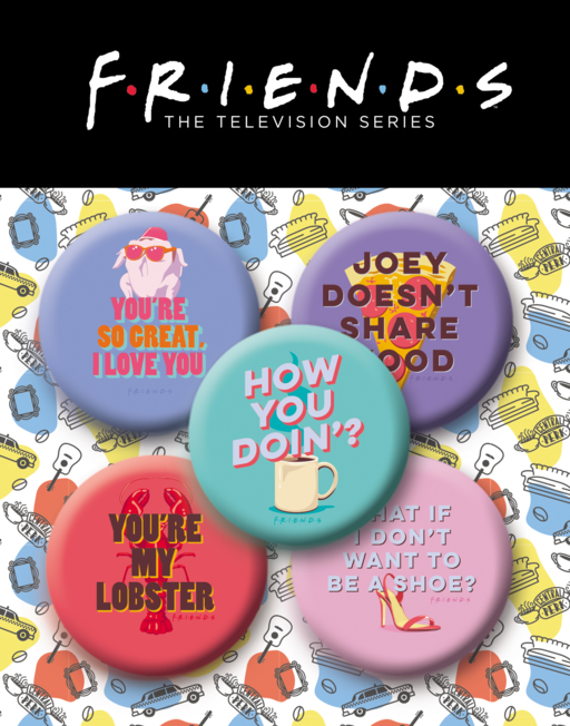 "Friends Evreni" serisi, samimi Friends dizisi evrenine ait özel ve resmi ürünlerdir! Not defterleri, eskiz defterleri, ayraçlar, rozetler, takvimler ve daha fazlası kült dizi hayranları için tasarlanmıştır! Kimler için: - "Nasııııl gidiyor?" cümlesiyle konuşmaya başlayanlar için. - Her an yırtık kedi şarkısına eşlik etmeye hazır olanlar için. - Chandler’ın şakalarını seven ve kendisi utanınca şaka yapanlar için. - Özel rozet seti sahibi olmak isteyenler için. Rozet setinin avantajları: - Özel ve canlı tasarımlar. - Her rozetin çapı 38 mm. - Diziden en ikonik sözler. - Avrupa asma kancalı pakette rahat paketleme.