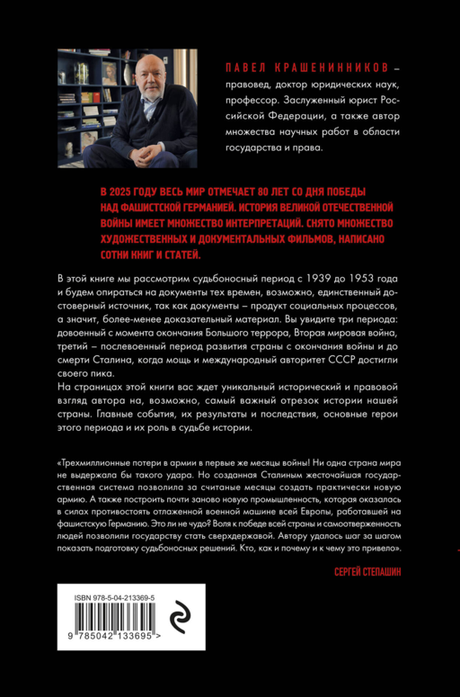 İkinci Dünya Savaşı, dünya gelişimini belirleyen dönüm noktasıdır. İkinci Dünya Savaşı tarihi pek çok yoruma sahiptir ve bugün birçok olayı mit haline getirilmiştir. Ünlü Rus hukukçu, hukuk doktoru ve profesör Pavel Kraşeninnikov'un "Süper Güce Giden Yol. Savaş ve Barış Döneminde Devlet ve Hukuk (1939—1953)" adlı kitabında seferberliklerden savaş faaliyetlerine, zaferden savaş sonrası yeniden yapılanmaya kadar olan olaylar incelenmektedir. Bu yayın, "Devrime Karşı Devlet" kitabının devamıdır ve okuyucuyu devlet ve hukuk açısından İkinci Dünya Savaşı'nın korkunç olayları ile tanıştırır. Ülkenin savaşa nasıl hazırlandığı ve savaştan önce hangi önlemlerin alındığı, Büyük Vatanseverlik Savaşı sırasında hangi yasaların ülkeyi yönettiği, zafer sonrası Sovyetler Birliği'nin nasıl yeniden inşa edildiği gibi pek çok sorunun cevabını bu kitapta bulacak ve insanlık tarihindeki en yıkıcı askeri kampanya hakkında mitleri çürütebileceksiniz. Rusya tarihi, devlet yapısı ve hukuku ile ilgileniyorsanız ve hukuk biliminin devletin güçlenmesine nasıl etki ettiğini anlamak istiyorsanız, bu kitap kütüphaneniz için değerli bir kazanım olacaktır.