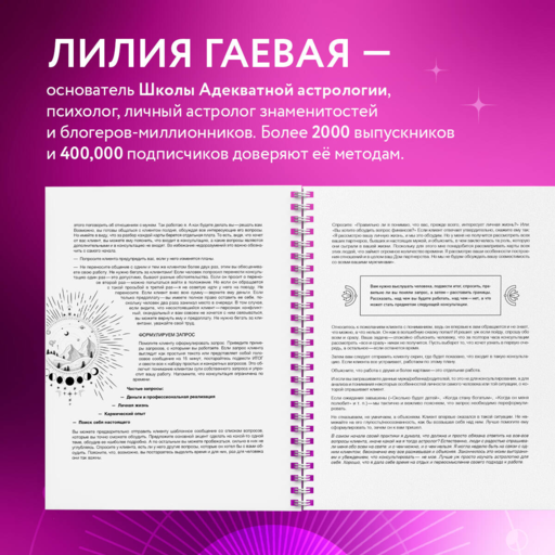 Liliya Gaevaya – Adequat Astroloji Okulu'nun kurucusu, profesyonel astrolog. 2000+ mezun, 12 yılı aşkın iş deneyimi, 400.000'den fazla takipçi. "Adequat Astroloji. Kendi amacını nasıl bulursun" adlı çok satan kitabın yazarı. Ünlülerin, yıldızların ve milyonlarca takipçisi olan blog yazarlarının kişisel astrologu.