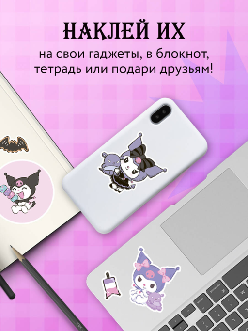 Sevimli kötü kahraman Kuromi'nin çıkartma seti her şeyi şirinlikle doldurmanıza yardımcı olacak! Telefon, bilgisayar hatta valiz gibi her yüzeye yapıştırılabilir. Set içinde 5 adet A5 boyutunda sayfa ve 50'den fazla çıkartma bulunur — komik ve ukala Kuromi çevrenizdeki tüm alanı süslemenizi sağlar!