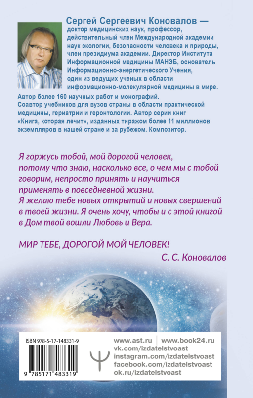 Bilgi ve Enerji Öğretisi yazarı S. S. Konovalov'un "Dünyanın Yaratılışı. Başlangıç. Tasarı. Gezegen" kitabı, Evrenin kökeni, Güneş sisteminin ve gezegenimiz Dünya'nın başlangıcı, Yaratılışın büyük eylemi ve bu eylemde Yaratma Enerjisinin rolü hakkında benzersiz bilgiler içerir. Bu kitapta Doktor S. S. Konovalov, bize Evrenin yapısını, onun Dünyalarını ve tüm canlı dünyanın yasalarını açığa çıkarır, gezegenimize insanın gelişi için ortamın oluşumunu anlatır.