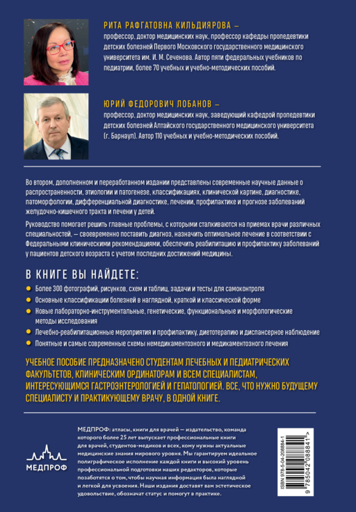Gastroenteroloji ve hepatoloji alanında lider yerli uzmanlar Rita Kildiyarova ve Yuri Lobanov tarafından hazırlanan görsel rehber. Kitap, farklı branşlardan doktorların muayenelerde karşılaştığı temel sorunları çözmeye yardımcı olur — zamanında tanı koymak, optimal tedavi belirlemek, tıbba dair en son gelişmeler göz önünde bulundurularak rehabilitasyon sağlamak. Bu, ikinci, eklenmiş ve revize edilmiş baskıdır. İçinde 300'den fazla fotoğraf, çizim, şema ve tablo bulunmaktadır. Başlıca hastalık sınıflandırmaları görsel, kısa ve klasik formatta sunulmuştur. Yeni fonksiyonel ve morfolojik araştırma yöntemleri tanımlanmıştır. Yazarlar tedavi-rehabilitasyon uygulamalarına, önleme, diyet tedavisi ve çocukların periyodik takibine büyük önem vermiştir. Anlaşılır ve en modern ilaçsız ve ilaçlı tedavi şemaları açıklanmıştır. Bu rehber, gastroenterologlar, hepatologlar, pediatrisyenler ve tıp öğrencileri için vazgeçilmez bir yardımcıdır. Her uygulayıcı doktora mükemmel bir hediyedir!