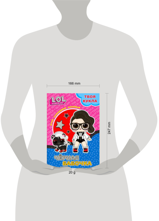 L.O.L. SURPRISE! Çıkartmalı ve büyük bebekli boyama kitabı. Oyna, boya, yapıştır. Siyah kelebek.