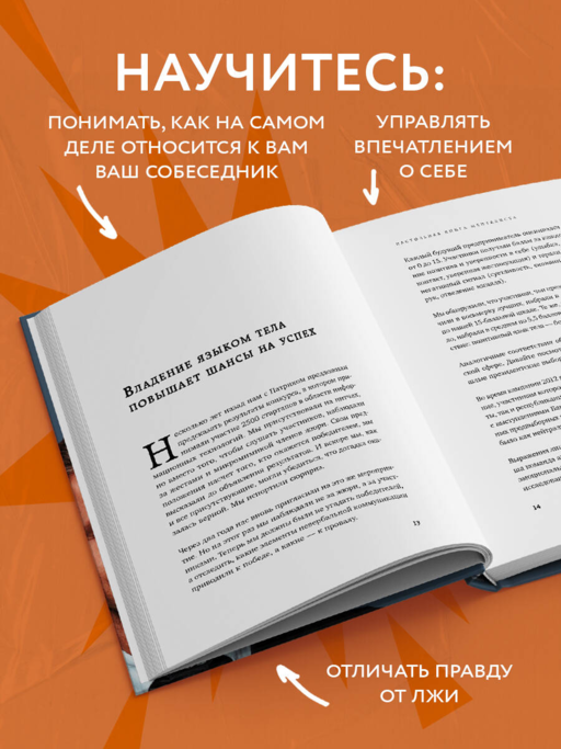 Jestler ve mimiklerle insanları okuma yeteneği birçok kapıyı açar. Kendi beden dilinizi yönetme becerisi ise sizi tartışmalarda ve müzakerelerde yenilmez yapar. Ayrıca çevrenizde her zaman avantajlı bir izlenim bırakmanızı sağlar. TEDx konuşmacıları ve dünyanın en büyük sözsüz iletişim eğitim şirketinin kurucuları Kasia ve Patrick Vesowski, en modern ve kapsamlı beden dili kitabını yazdılar. Yazarlar bu kitapta son 10 yılın bilimsel araştırmalarını derleyip anlaşılır örneklerle şunları açıkladılar: - Karşınızdaki kişinin size gerçek duygularını nasıl yansıttığını anlamak; - "Pozitif beden dili" ile kendiniz hakkında olumlu izlenim yaratmak; - Doğruyu yalandan ayırt etmek; - Mikro sinyallerle rakiplerin duygusal durumlarını okumak. "Yazarlar sözsüz iletişim ve nesnel değerlendirme alanında uzmanlardır. Sözsüz iletişimin analiz prensiplerini anlaşılır ve erişilebilir dille açıklamış ve temel unsurlarını incelemişlerdir. Bu kitap iletişim etkinliğinizi artırmaya ve insanları daha iyi anlamanıza yardımcı olacak." — ALEKSEY FILATOV, profil uzmanı