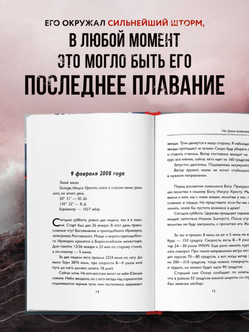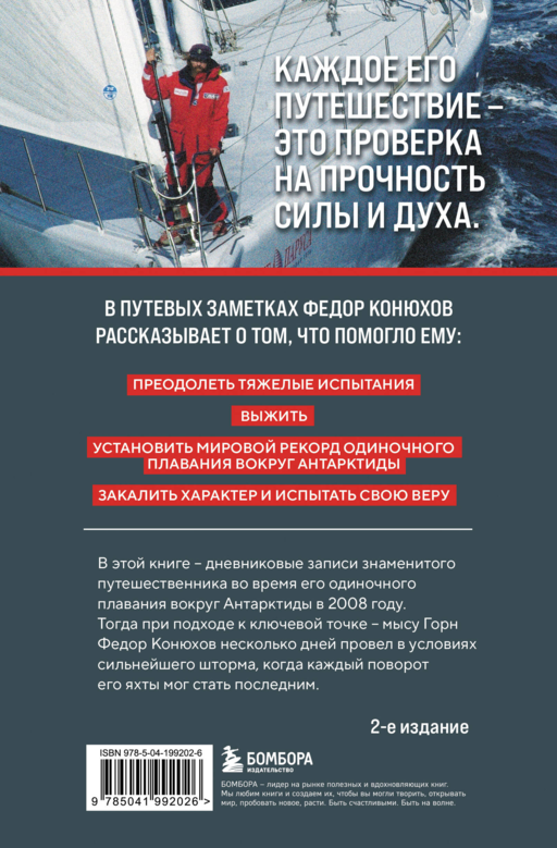 Bu kitap, gezgin Fedor Konyukhov'un 2008 yılında Antarktika etrafında tek başına yüzme dünya rekorunu kırmasını anlatan bir günlük kitabıdır. Genellikle fırtınalı dalgaların ortasında, günlerce uykusuz ve aç, fiziksel sınırların en üstünde. En zorlu sınavları aşmayı, hayatta kalmayı, karakteri güçlendirmeyi ve inancını sınamayı sağlayan hikayedir. Fedor Konyukhov’un hava, dağ ve okyanus seyahatleri anısına yaptığı tablolarla tanışacaksınız.