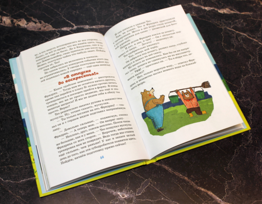 Gizemli adayı bulmak, nadir bir kelebek peşinde koşmak, hızlı konuşma yarışması — arkadaşlar ayılar Teo ve Friedrich'i kaç macera bekliyor! Kötü havasına son! Sıkılmaya zaman yok! Bu ikili ortak bir macera yaşamadan bir gün geçmez. Nehir kenarında piknik planlıyorlar ya da sadece yağmurlu günü ağaç evde yavaşça geçiriyorlar — birlikte geçirilen her gün unutulmaz bir olay haline geliyor. Bu hikayeler sadece okul öncesi çocukların değil, daha büyük çocukların da hoşuna gidecek, çünkü dostluktan, doğum günlerinden, hayvanlardan, rahatlıktan, dayanışmadan ve daha birçok konudan bahsediyor, bu da her yaş için harika temalar.